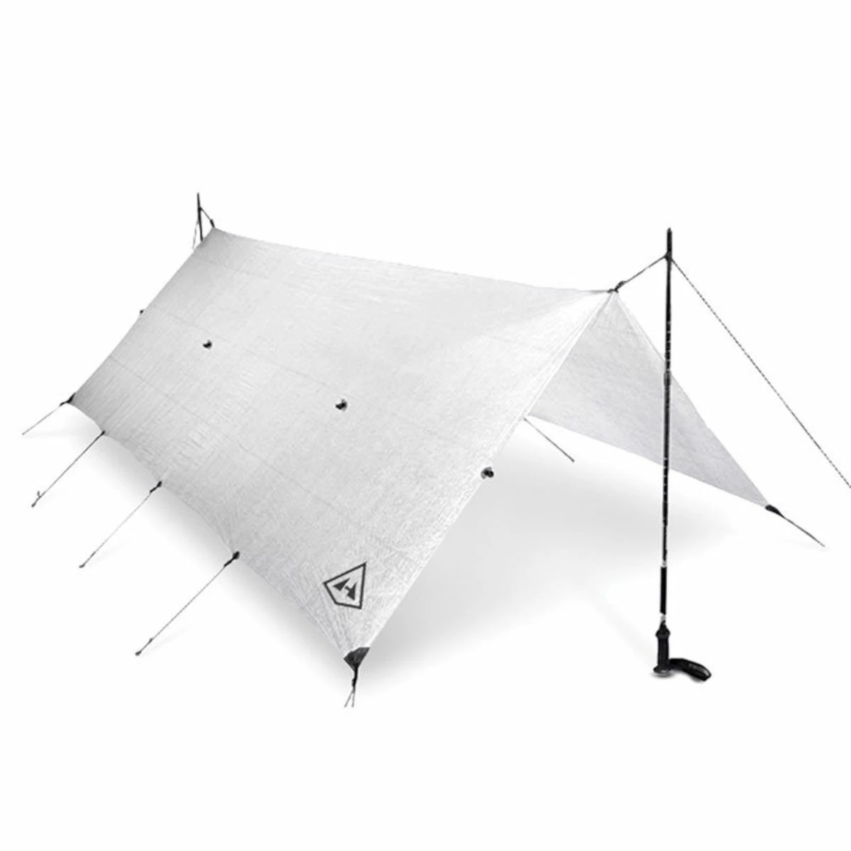 The ultimate minimalist, ultralight tarp shelter for backpacking, our Flat Tarp is engineered to be precisely what passionate adventurers need and nothing more. Pitch according to weather conditions, terrain or need. Flat edges and square corners, non-catenary cut for maximum versatility. Every Hyperlite Mountain Gear Dyneema® Composite Fabric (formerly Cuben Fiber) tarp features fully bonded seams, adding near-total impermeability to a long list of attributes, including exceptional durability and UV resistance, that distinguish the Flat Tarp from other ultralight tarp options. Use adjustable trekking poles for set up. Trekking poles and stake kits sold separately. Use with the Echo Inserts (sold separately) for protection from bugs and precipitation.